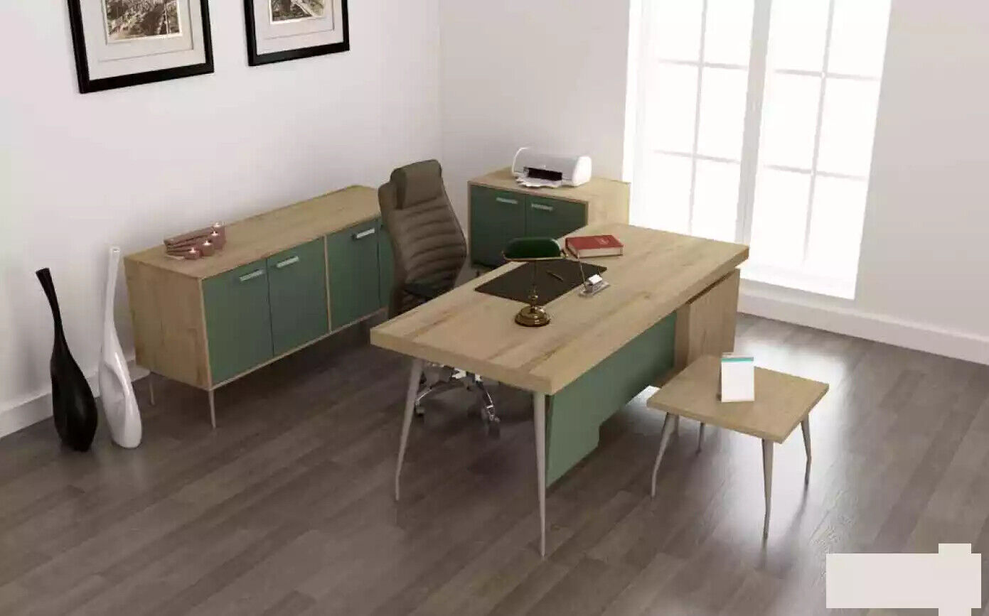 Stwórz profesjonalne biuro z naszym kompletnym zestawem mebli biurowych! Ten zestaw składa się z czterech elementów: biurka, szafki na dokumenty, kredensu i stolika kawowego, wszystkie wykonane z solidnego drewna. Biurko ma wymiary około 180 x 80 x 75 cm, ale dostępne są również większe rozmiary. Szafka na dokumenty to idealne miejsce do przechowywania ważnych papierów, a kredens pozwoli Ci na dodatkową organizację przestrzeni. Stolik kawowy w komplecie sprawi, że Twoja przestrzeń biurowa będzie kompletna. Stwórz ergonomiczne i eleganckie biuro dzięki naszemu zestawowi mebli!