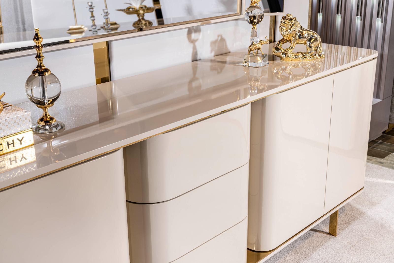 jadalnia Stół Kompletny 4 Krzesła Kredens Lustro Zestaw 7-częściowy Stół obiadowy