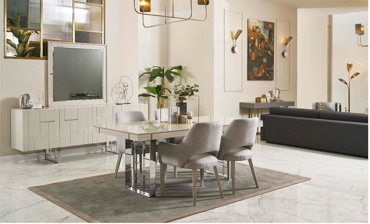 Oferujemy 9-częściowy komplet mebli do jadalni Grupa dinette, który zachwyca elegancją i funkcjonalnością. Sto obiadowy o wymiarach 200x95x76 cm oraz krzesła (57x60x90 cm) zapewnią wygodę podczas posiłków, a sideboard (220x48x80 cm) i lustra (108x5x108 cm) dodadzą stylu twojej jadalni. Wykonane z drewna i wysokiej jakości materiałów. Sprawdź inne kolory dostępne na życzenie. Stwórz idealne wnętrze dzięki naszym designerskim meblom do jadalni.