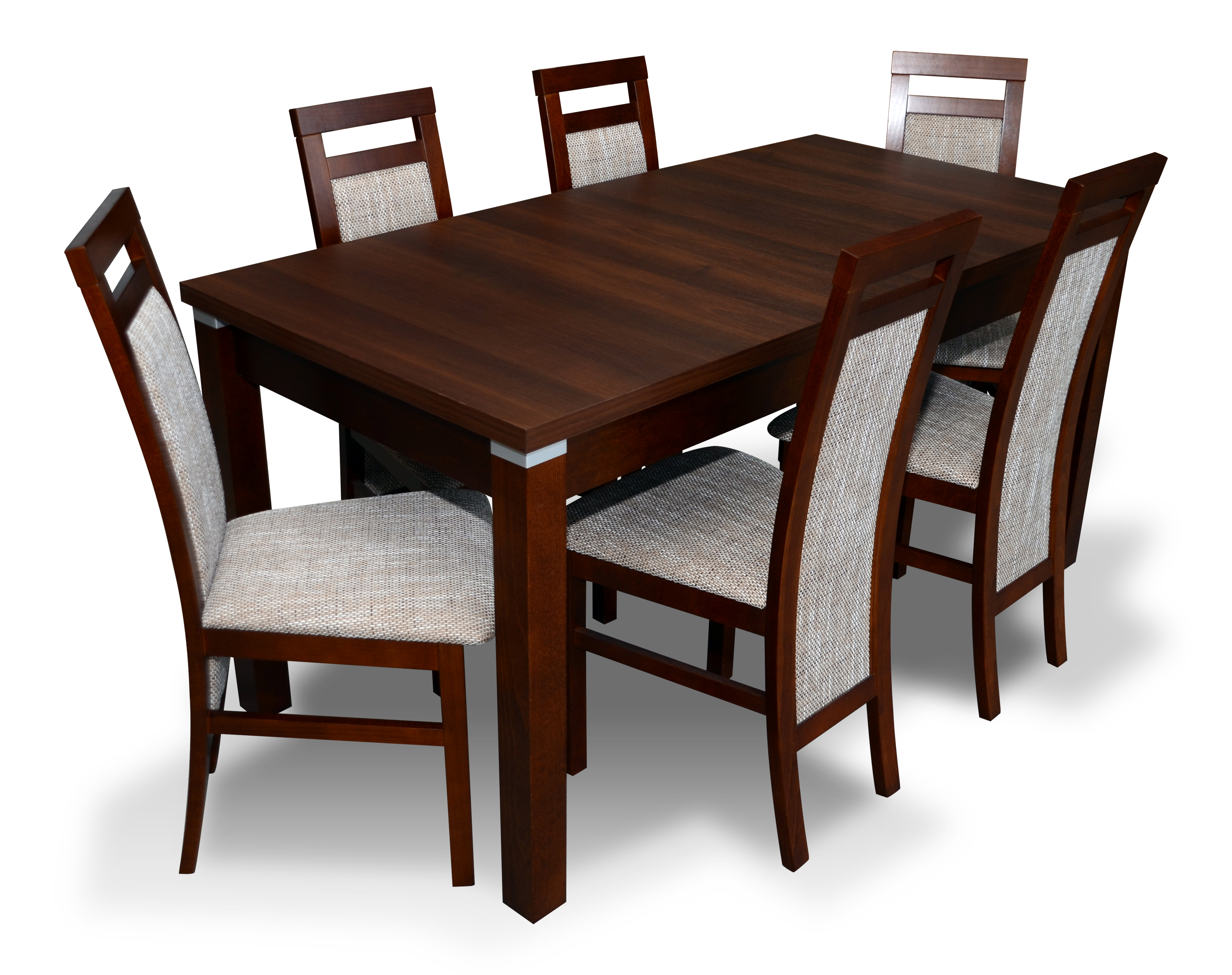 Nowoczesny i designerski zestaw do jadalni już dostępny! Nasz elegancki stół obiadowy wraz z 6 wygodnymi krzesłami to idealne rozwiązanie do Twojej jadalni. Zestaw wykonany z wysokiej jakości drewna, zapewniający nie tylko styl, ale także funkcjonalność. Stołowa powierzchnia o wymiarach około 90 x 160 cm, rozkładana do 215 cm, daje wystarczającą przestrzeń na wspólne posiłki. Krzesła o wymiarach 97 x 46 x 46 cm zapewniają wygodę podczas siedzenia. Możliwość zmiany koloru na drewno lub materiał w łatwy sposób dostosuje zestaw do Twoich preferencji. Stwórz wyjątkową i komfortową przestrzeń do spożywania posiłków dzięki naszemu designerskiemu zestawowi Stół & Krzesła!