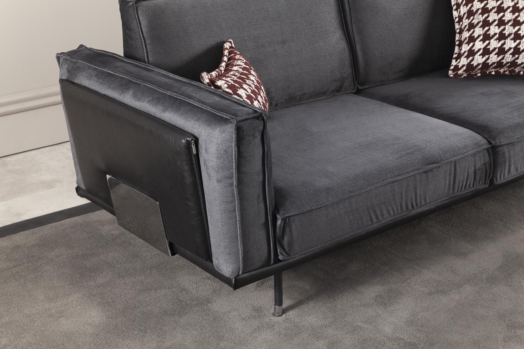 Luksusowa kanapa trzyosobowa w stylu włoskim z miękkimi szarymi poduszkami | xlmeble.pl