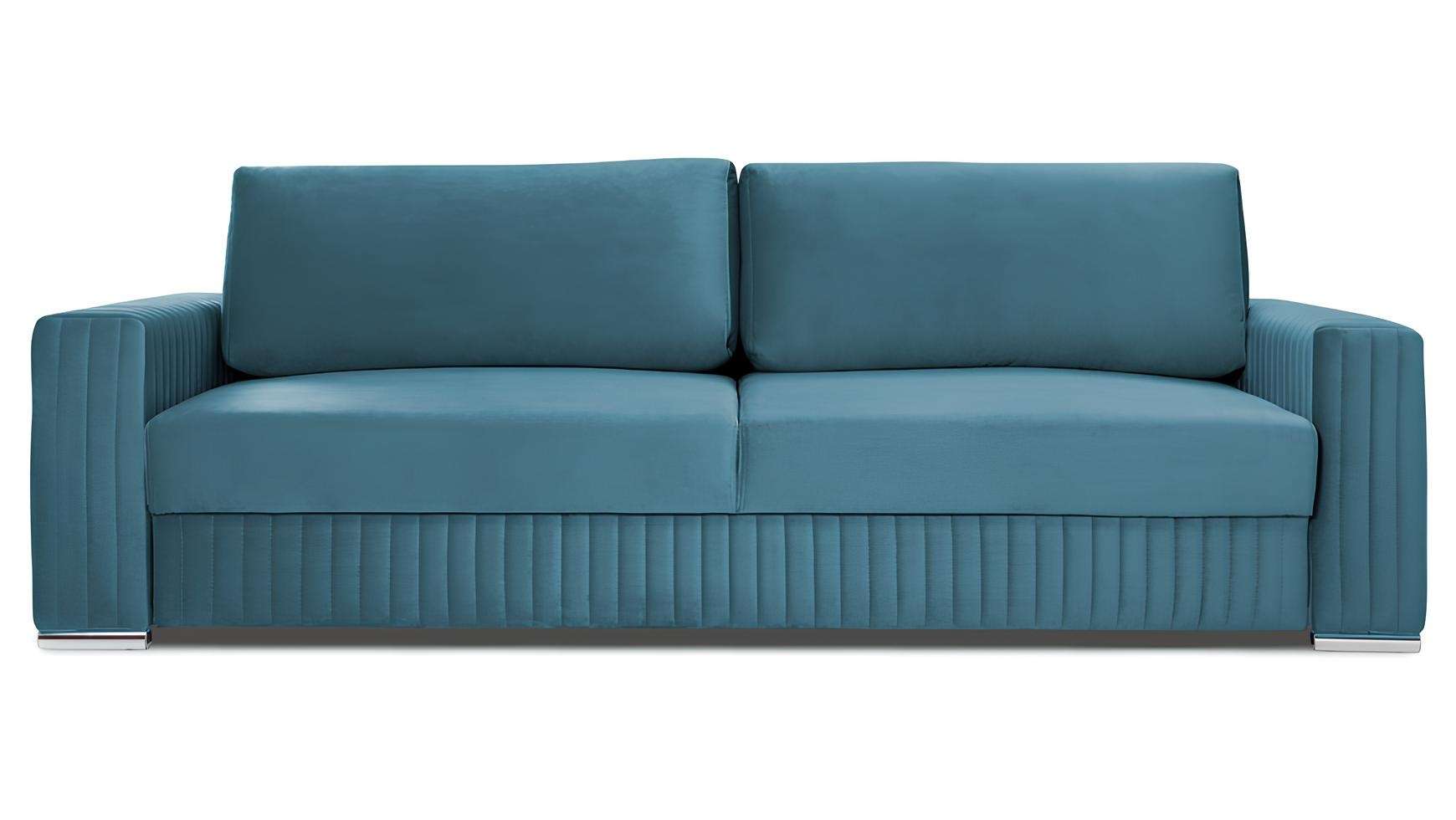 Nowoczesna sofa 3-osobowa z funkcją łóżka w odcieniu niebieskiego Pointelle to kwintesencja elegancji oraz funkcjonalności. Wykonana z najwyższej jakości materiałów, stanowi idealne połączenie komfortu i designu, które zaspokoi oczekiwania nawet najbardziej wymagających. Jej subtelne linie oraz starannie dobrany kolor wprowadzą do każdego wnętrza atmosferę luksusu, tworząc przestrzeń sprzyjającą relaksowi i wyjątkowym chwilom. Funkcja łóżka pozwala na łatwe przekształcenie sofy w wygodne miejsce do spania, co czyni ją nie tylko estetycznym, ale i praktycznym wyborem. Ta sofa to doskonała inwestycja w styl i komfort, które podkreślą ekskluzywny charakter Twojego domu.