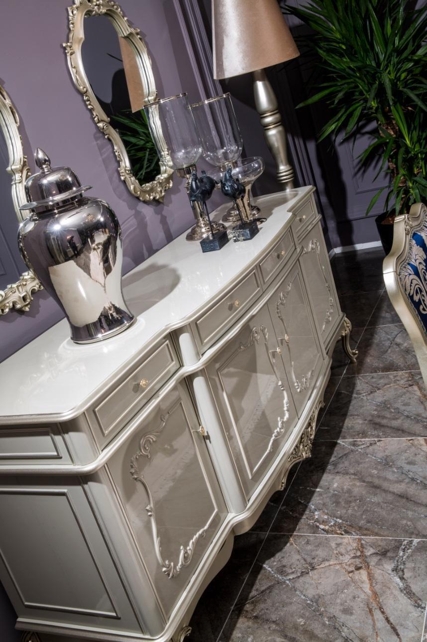Oferujemy luksusową komodę do salonu, która doda elegancji i funkcjonalności do Twojego wnętrza. Nasze meble są wykonane z solidnego drewna i charakteryzują się wysoką jakością wykonania. Komoda posiada piękną szklaną witryną, dodając nowoczesny akcent do tradycyjnego designu. Praktyczne wymiary komody to około 213 x 52 x 96 cm, co zapewnia dużo miejsca na przechowywanie oraz wyeksponowanie ulubionych elementów dekoracyjnych. Poza tym, szeroki wybór kolorów, w tym Czerwony Rubin, Błękitne Niebo, Zielony Las i wiele innych, oraz możliwość personalizacji materiału (takich jak welur, aksamit, skóra ekologiczna) pozwala dostosować mebel do Twoich preferencji. Stwórz unikatową aranżację w swoim salonie dzięki naszej komodzie luksusowej. Wybierz jakość i styl z naszą kolekcją mebli do jadalni!