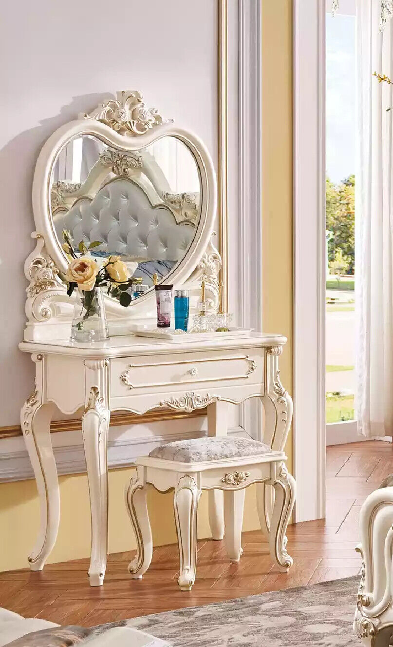 Klasyczny zestaw mebli drewnianych Toaletka Stołek Sypialnia 2-częściowy