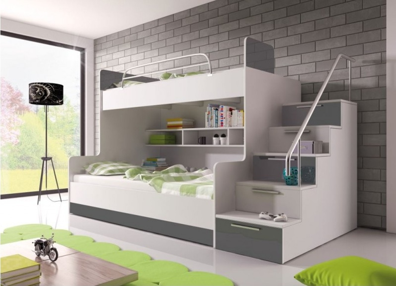 Szare Podwójne łóżko piętrowe Floors Łóżko żłobek Łóżko na poddaszu Meble o wysokim połysku