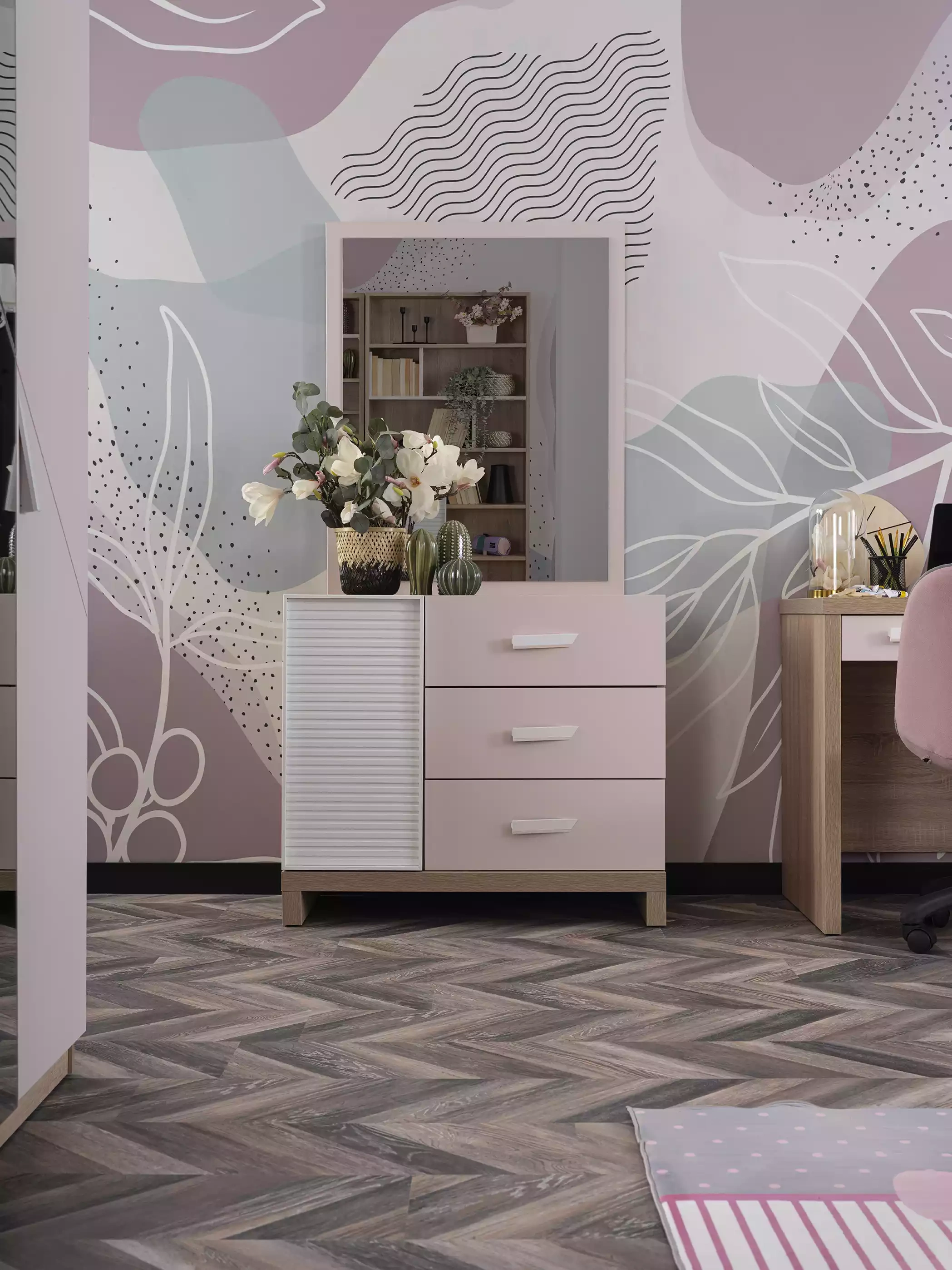 Komoda z lustrem w różowym odcieniu to kwintesencja elegancji i funkcjonalności, stworzona z myślą o wyjątkowych pokojach dziecięcych. W skład zestawu wchodzą dwie komody, które harmonijnie wpasowują się w wyrafinowane wnętrze, dodając mu subtelnego uroku. Wysokiej jakości materiały gwarantują trwałość, a staranne wykończenie podkreśla luksusowy charakter mebli. Lustro, zarówno praktyczne, jak i estetyczne, sprawia, że przestrzeń staje się optycznie większa, a każdy detal emanuje wyjątkowym stylem. Wybierając tę komodę, inwestujesz w niepowtarzalny element, który zaspokaja potrzeby najmłodszych, jednocześnie kreując atmosferę ekskluzywności w Twoim domu.