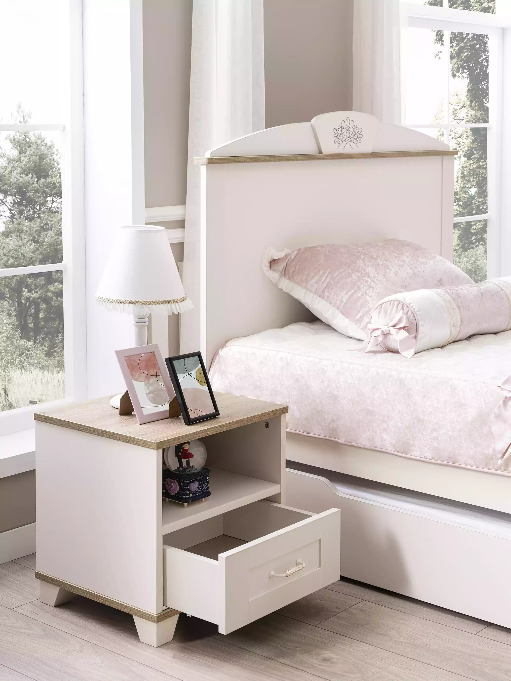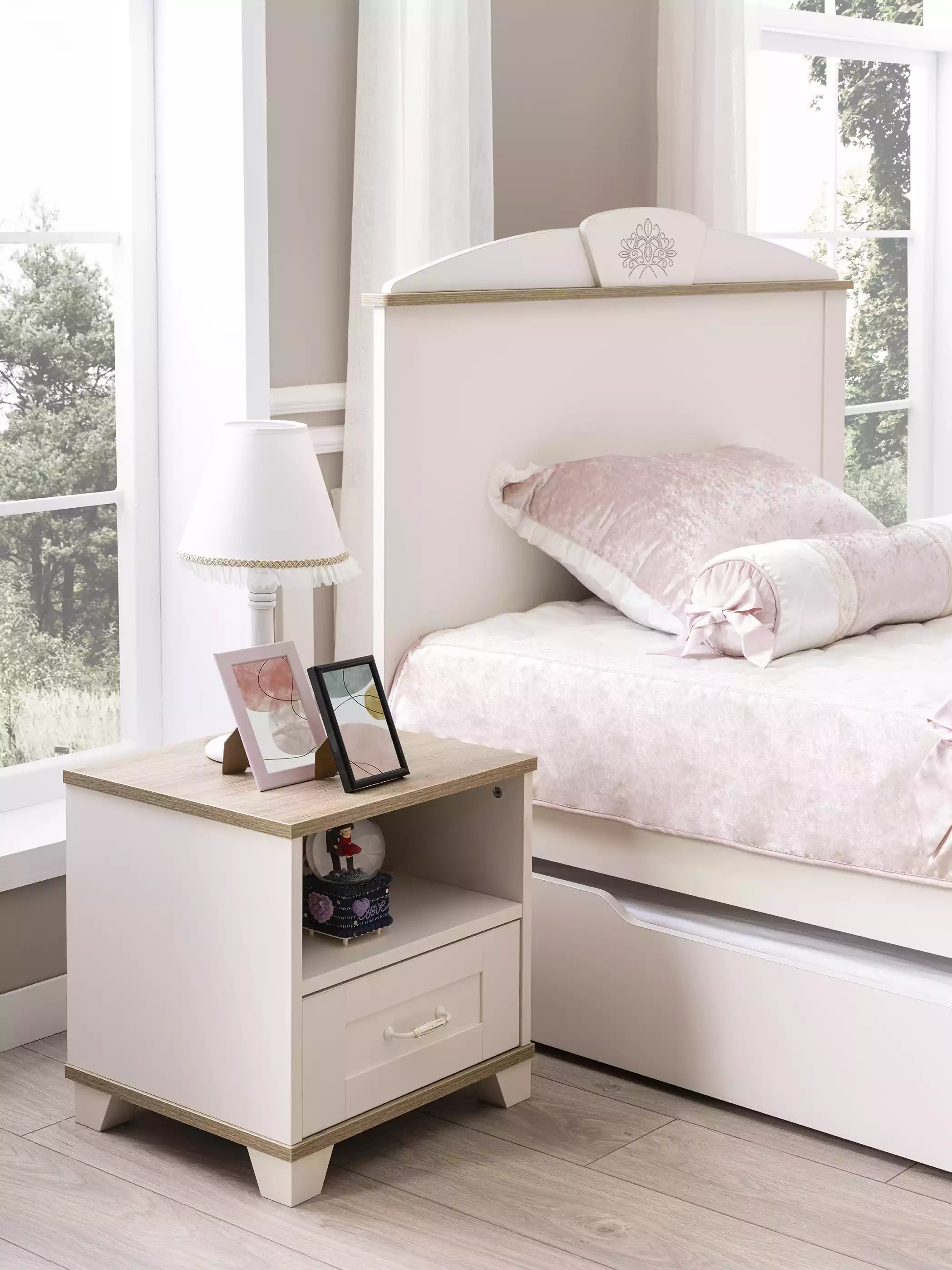 Zestaw mebli dziecięcych, Łóżko, Stolik nocny, Szafa, Kredens, Lustro
