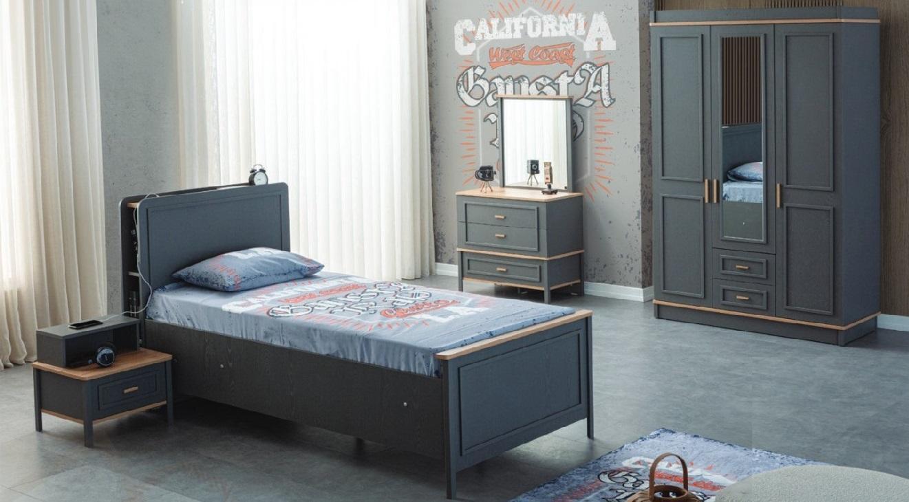 Zestaw mebli dziecięcych to idealne rozwiązanie do urządzenia pokoju dla najmłodszych. Składający się z łóżka, stołu nocnego, szafy, kredensu i lustra, kompletny zestaw zapewnia funkcjonalność i estetykę. Wykonany z drewna w szarym kolorze, zapewnia trwałość i styl. Łóżko składane o wymiarach 106 cm x 224 cm x 110 cm to centralny punkt, który zagwarantuje komfortowy sen. Dodatkowo, wszystkie elementy zestawu są idealnie dopasowane do stworzenia przestrzeni, w której dzieci będą czuły się jak w swojej strefie komfortu. Stwórz przyjazne i funkcjonalne otoczenie dla swojego dziecka dzięki kompletnemu zestawowi mebli dziecięcych!