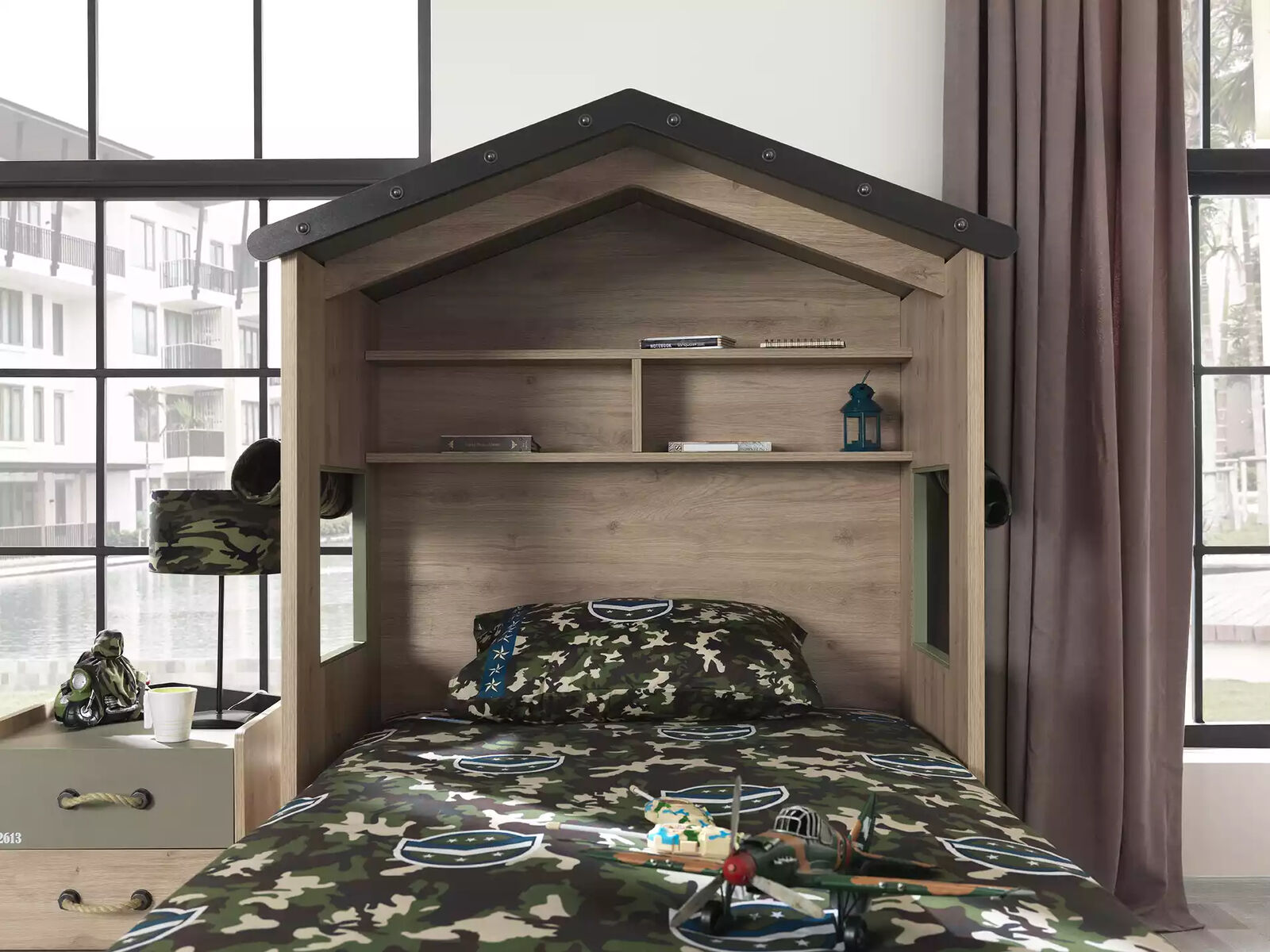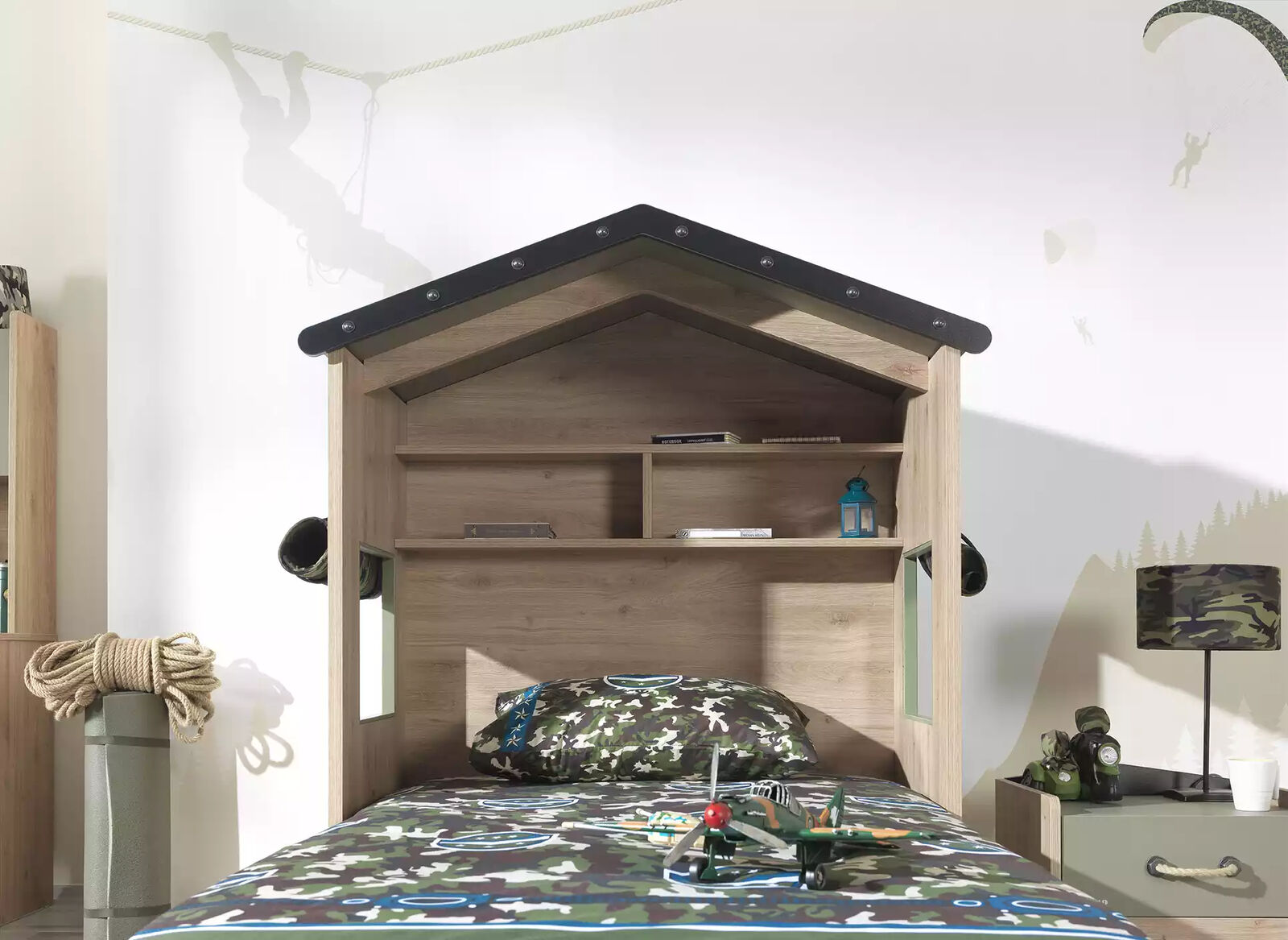 Oferujemy kompletny zestaw mebli dziecięcych, który łączy funkcjonalność z estetyką. Nasze meble są idealne do stworzenia przyjaznej przestrzeni dla dzieci. Komplet zawiera składane łóżko z powierzchnią podparcia materaca około 100 cm x 200 cm oraz stolik nocny o wymiarach około 50 cm x 46 cm x 47 cm. Wykonane z drewna w pięknym, zielonym kolorze. Stwórz wyjątkowy pokój dla Twojego malucha!