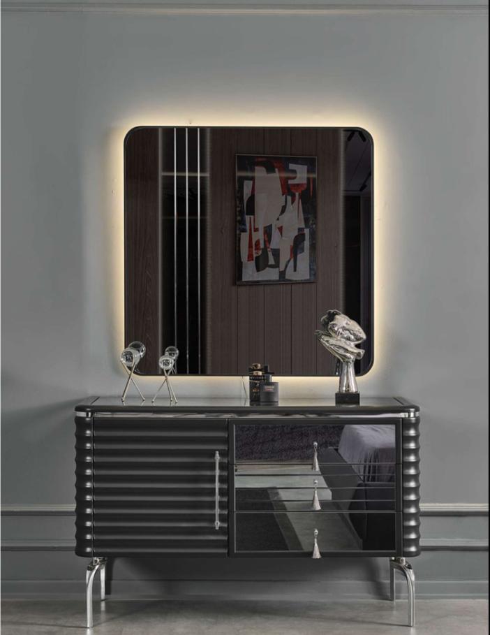 Czarna Sypialnia Zestaw Designerska Kredens z LED-Lustro Ustaw