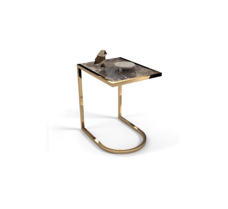 Oferujemy luksusowy designerski stół do salonu - Stolik wykonany z wysokiej jakości stali nierdzewnej z eleganckim szklanym blatem. Ten designerski mebel to idealne połączenie funkcjonalności i stylu. Dzięki wymiarom około 35 x 45 x 55 cm, ten elegancki stolik będzie doskonałym dodatkiem do Twojego salonu lub pokoju dziennego. Zapewni wygodne miejsce na Twoje ulubione napoje i przekąski, tworząc przyjemną atmosferę w Twoim domu. Wybierz nowoczesny design oraz trwałość stolika, który sprawi, że Twój salon będzie wyglądał elegancko i stylowo. Zadbaj o detale we wnętrzu i wybierz nasz luksusowy stolik do salonu!