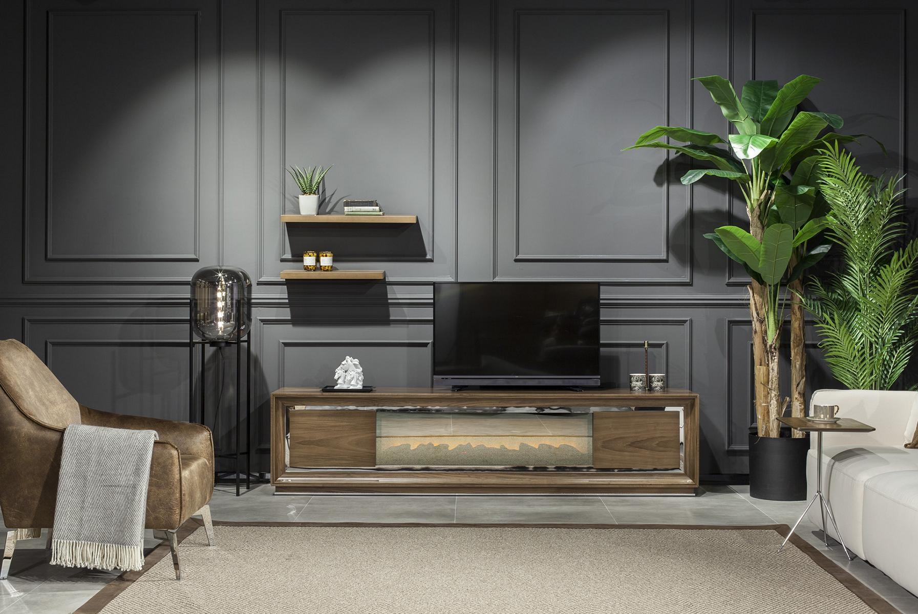Mobilna szafka RTV Armadio Mobili Pareti to doskonałe połączenie elegancji i funkcjonalności. Wykonana z najwyższej jakości materiałów, w ciepłym brązowym odcieniu, stanowi wyrafinowany element każdego wnętrza. Jej subtelne linie i starannie wykończone detale nadają przestrzeni luksusowy charakter, idealnie wpisując się w ekskluzywny styl życia. Przemyślana konstrukcja zapewnia nie tylko estetykę, ale i praktyczność, umożliwiając swobodne aranżowanie przestrzeni. Ta szafka RTV to nie tylko mebel – to manifest dobrego smaku i pasji do wyjątkowych wnętrz, który z pewnością wzbogaci Twoją domową oazę.