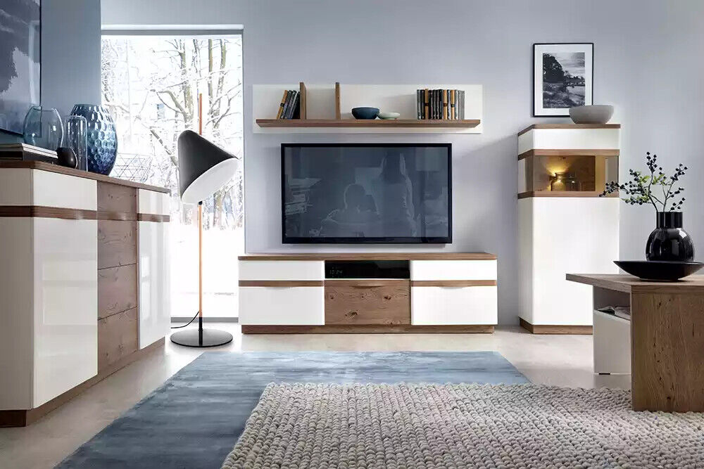 Szafka pod telewizor Ściana Jednostka ścienna Szafka pod telewizor Biały wysoki połysk