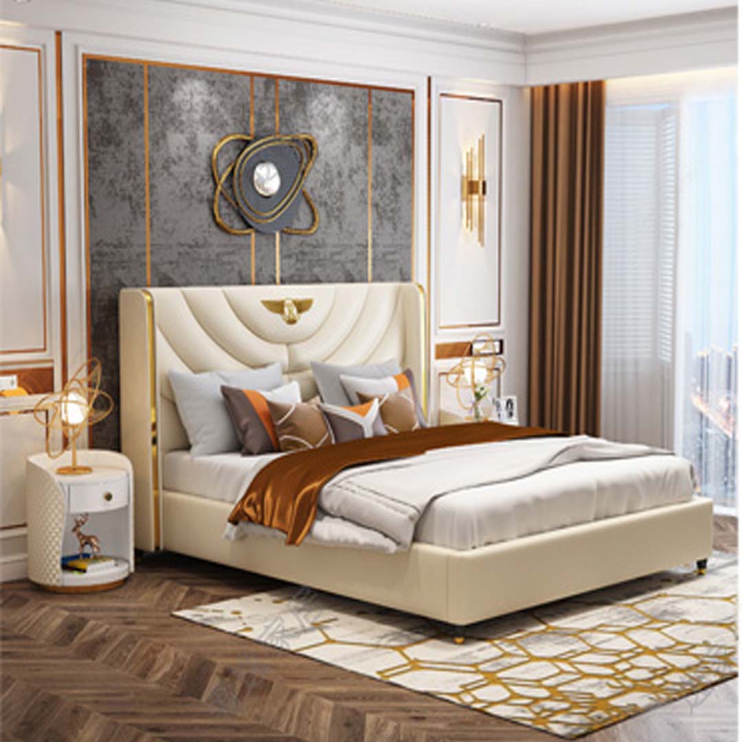Oferujemy eleganckie i nowoczesne łóżko podwójne "Double Luxury" idealne do sypialni w hotelu lub domu. Produkt ma stylową ramę z prawdziwego drewna, pokrytą wysokiej jakości sztuczną skórą, co gwarantuje komfortowy sen i elegancki wygląd. Ze standardowymi wymiarami 180 x 200 cm, łóżko ma długość około 202 cm, szerokość około 208 cm i wysokość około 125 cm. Klasyczny kolor prezentowany na zdjęciu wpasuje się w różnorodne wnętrza. Zapewnij sobie luksusowy odpoczynek i dodaj szczyptę designu do swojej sypialni dzięki temu wyjątkowemu łóżku "Double Luxury". Graj w stylu!