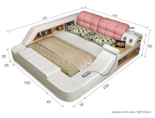Oferujemy ekskluzywne Łóżko Wielofunkcyjne Półka Szafa Stacja Ładująca USB Dekoracja Podwójna Skóra łóżka, które połączą komfortowy sen z elegancją w Twojej sypialni! To stylowe i funkcjonalne rozwiązanie, które zapewni Ci nie tylko wygodę, ale także przestrzeń do przechowywania dzięki schowkom. Dzięki regulowanym zagłówkom, relaksującej funkcji masażu oraz oświetleniu LED stworzysz idealne miejsce do wypoczynku i relaksu. Dodatkowo, łóżko wyposażone jest w stację ładowania USB, soundboxy z Bluetooth, a także Bluetooth do kontaktu z Twoim telefonem, zapewniając Ci wszystkie potrzebne udogodnienia. Możesz dostosować łóżko do swoich preferencji, wybierając kolor oraz rodzaj materiału, takiego jak klejona skóra, prawdziwa skóra czy wysokiej jakości materiał tekstylny. Dodatkowo, w opcji możesz wybrać dodatki takie jak rama listwowa, stolik nocny czy materac, aby stworzyć idealne łóżko dopasowane do Twoich potrzeb. Zamów teraz to niezwykłe łóżko, które nie tylko uzupełni wystrój Twojej sypialni, ale także zapewni Ci wyjątkowy komfort i funkcjonalność. Stwórz swoją strefę relaksu już dziś!