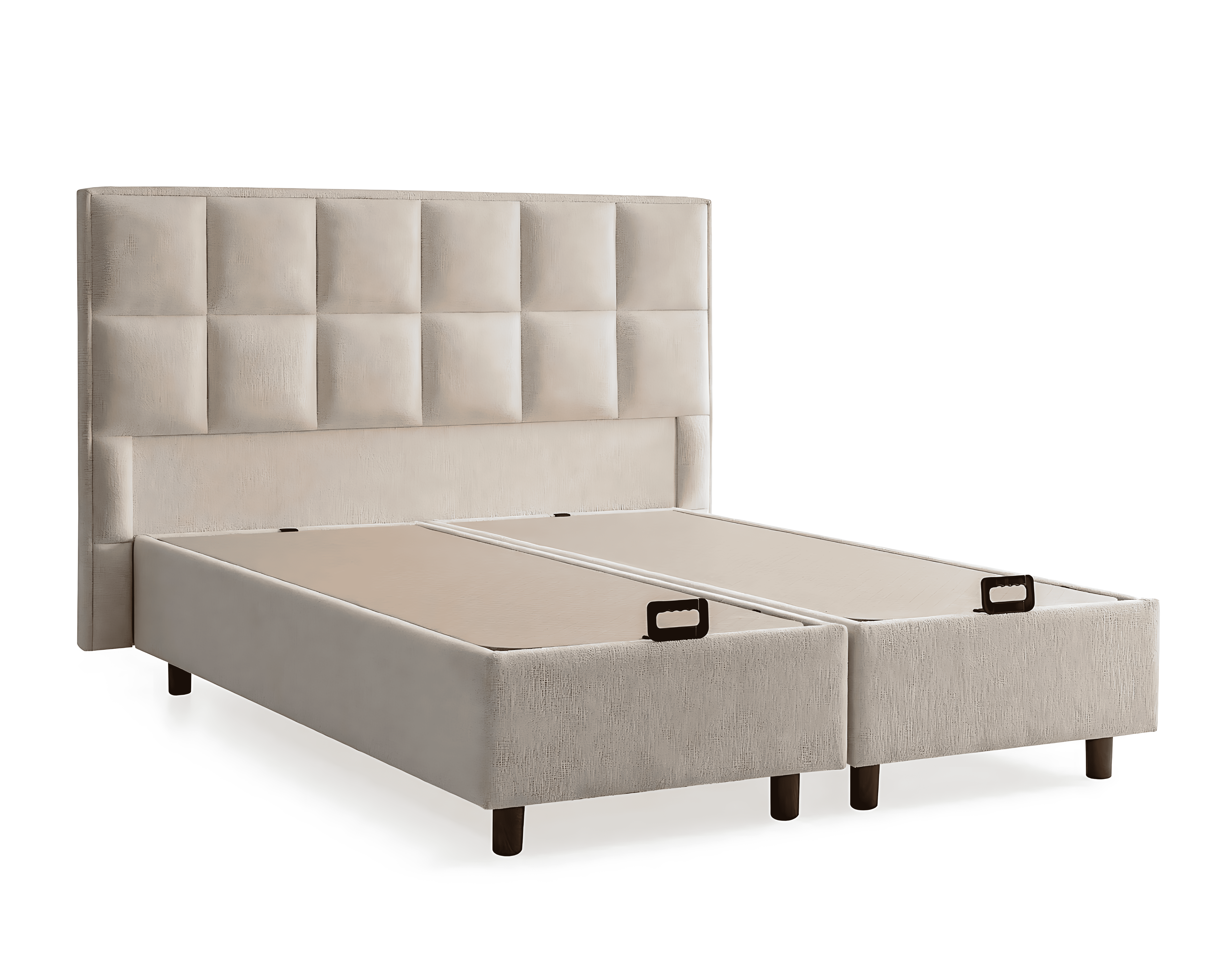 Eleganckie łóżko z materacem w beżowym materiale | xlmeble.pl