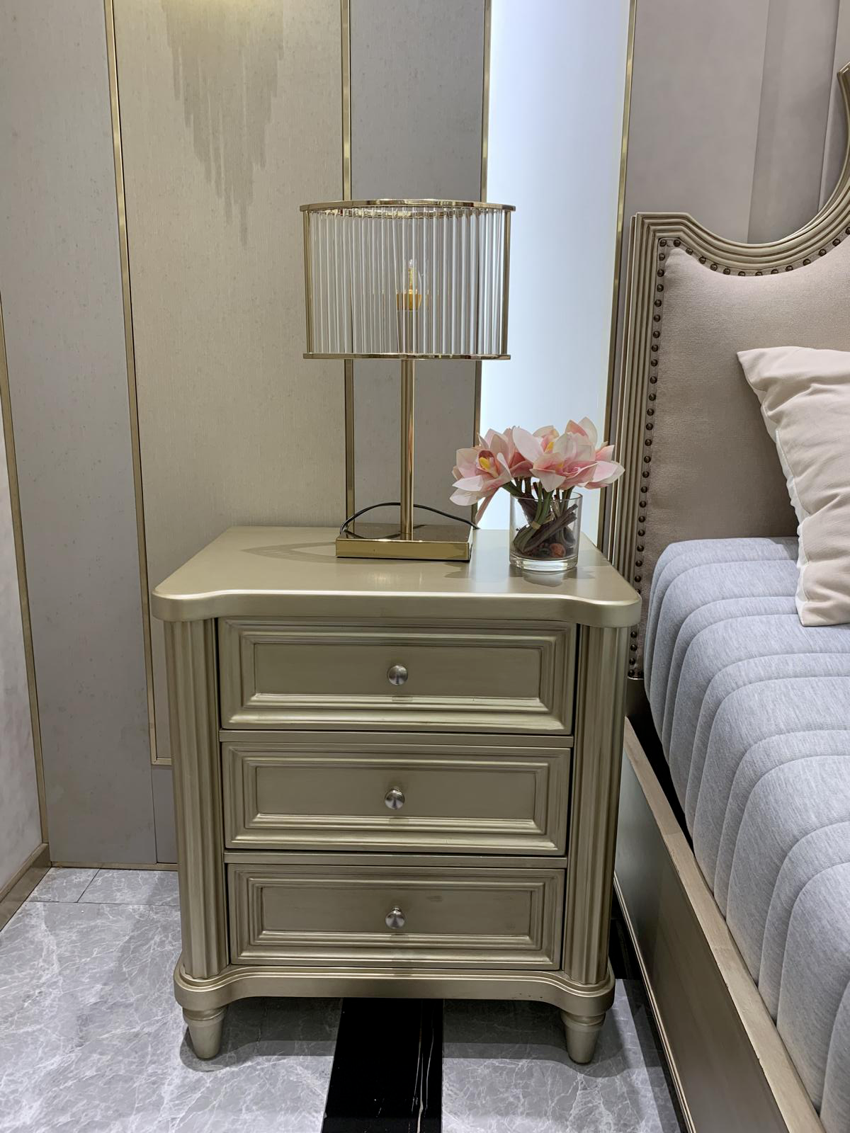 Szafki nocne Stolik nocny projekt konsoli nocnej Sypialnia Stolik Gold Drewno