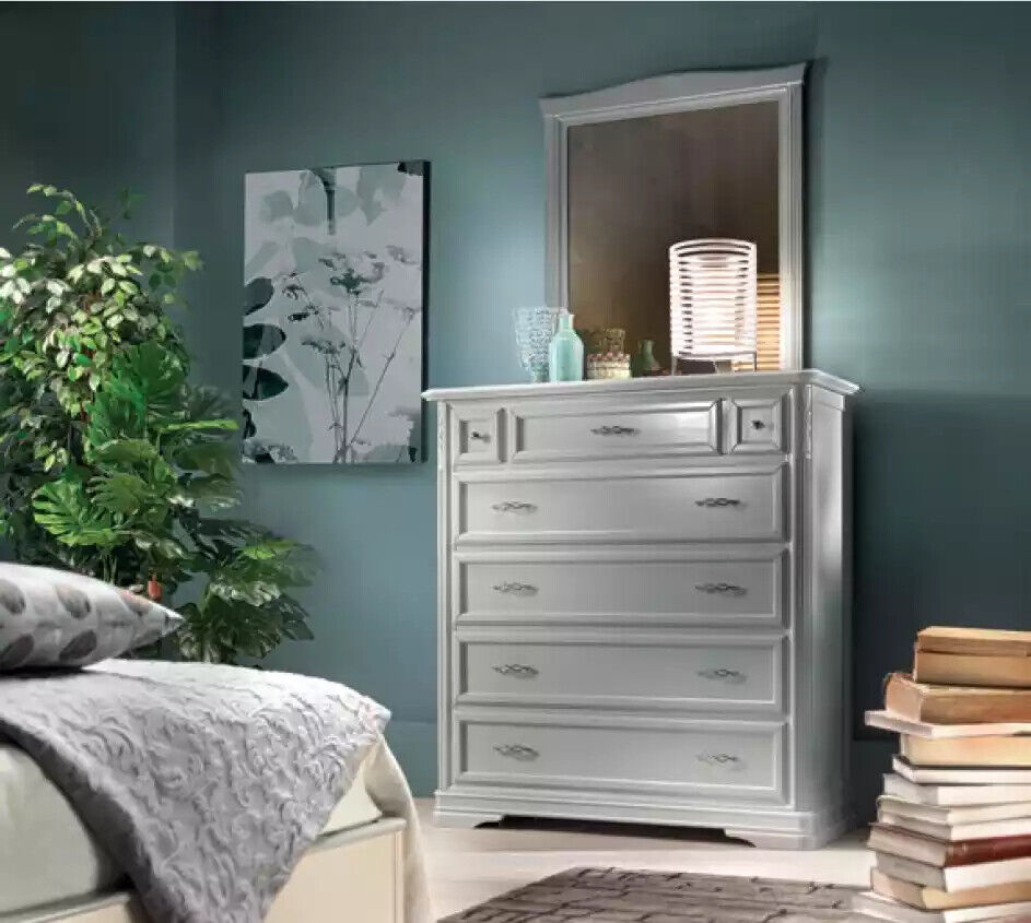 Odkryj nowoczesny i elegancki kredens z lustrem od Giuliacasa! Nasz kredens z lustrem Meble Moderne to idealne rozwiązanie do Twojej sypialni. Wykonany z wysokiej jakości drewna, zapewnia trwałość i funkcjonalność. Dzięki wymiarom około 120 x 51 x 130 cm, ten mebel jest nie tylko stylowy, ale także praktyczny. Lustro o wymiarach około 88 х 7 x 98 cm podkreśla elegancję całości. Kolor biały nadaje wnętrzu świeżości i nowoczesności. Połącz funkcjonalność z nowoczesnym designem już dziś - wybierz kredens z lustrem Meble Moderne od Giuliacasa!