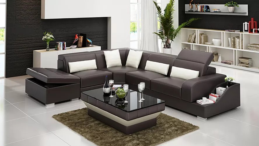 Ustawić zestaw narożny Sofa Skórzana sofa Narożnikowa kanapa Podkładka Podkładka Couch Żywy krajobraz