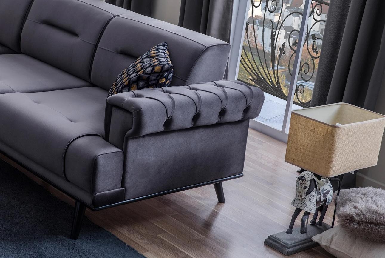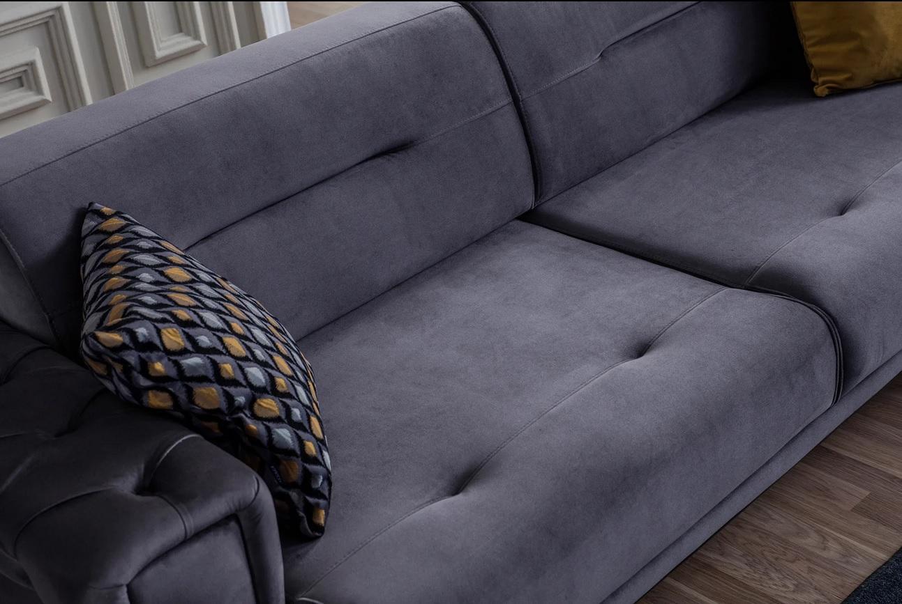 Ekskluzywna szara kanapa narożnikowa w kształcie litery L. Nowoczesna kanapa do salonu