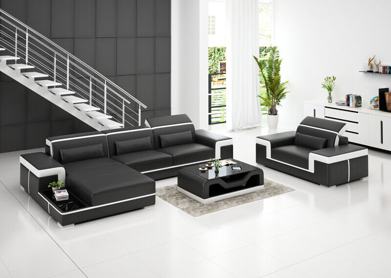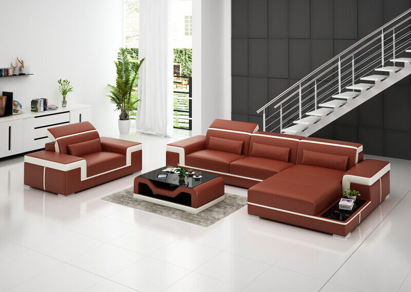 Żywy krajobraz Narożnikowa kanapa L-Form Fotel Set Ustawić Nowoczesną Sofę Skóra