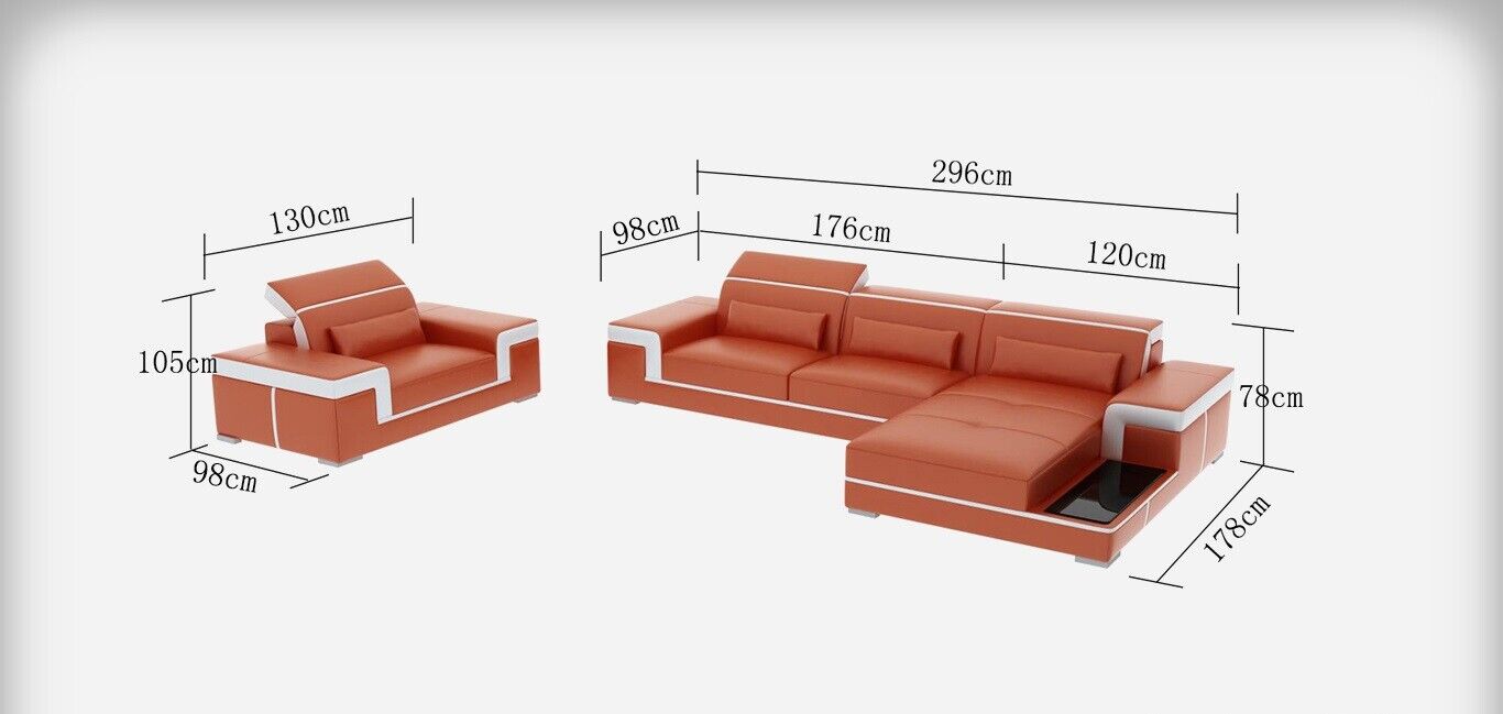 Oferujemy niezwykły Żywy krajobraz - Narożnikową kanapę w kształcie litery L, która zachwyci Twoje wnętrze! Nasze meble są dostosowane do personalizacji pod względem wymiarów, materiałów i designu, aby stworzyć eleganckie i komfortowe rozwiązania do Twojego salonu. Narożnikowa kanapa o imponujących wymiarach około 296 x 178 lub 178 x 296 cm, wysokości 78 cm, głębokości 98 cm oraz wysokości siedzenia i głębokości siedziska około 42 cm i 58 cm, to idealne miejsce do wypoczynku. Dodatkowo zestaw uzupełniają wygodny fotel o długości około 130 cm. Artykuł wykonany jest z wysokiej jakości Premium Klejonej skóry (70% skóra / 30% poliester), która jest miękka w dotyku i trwała. Ponadto, oferujemy opcje materiałowe do wyboru, takie jak skóra naturalna, aksamit, welur czy skóra ekologiczna, aby dostosować mebel do Twoich upodobań. Dostępne kolory to szeroka gama eleganckich odcieni, takich jak Czerwony Rubin, Błękitne Niebo, Złoty Złoty, Biały Śnieg oraz wiele innych, które pozwolą dopasować kanapę do Twojego stylu. Korpus mebla posiada ramę wykonaną z prawdziwego drewna, co dodaje elegancji i solidności. Innowacyjny design, wysoka jakość wykonania i możliwość personalizacji sprawiają, że nasz narożnikowy zestaw z fotelem to doskonały wybór dla każdego, kto ceni komfort i wyrafinowany styl. Uzupełnij swój salon o wyjątkowy kawałek luksusu!