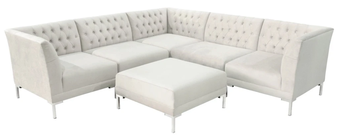 Narożnikowa kanapa Stołek Creme Biały Big Textill Materiał Chesterfield Sofy Luxury Meble 2-częściowe.