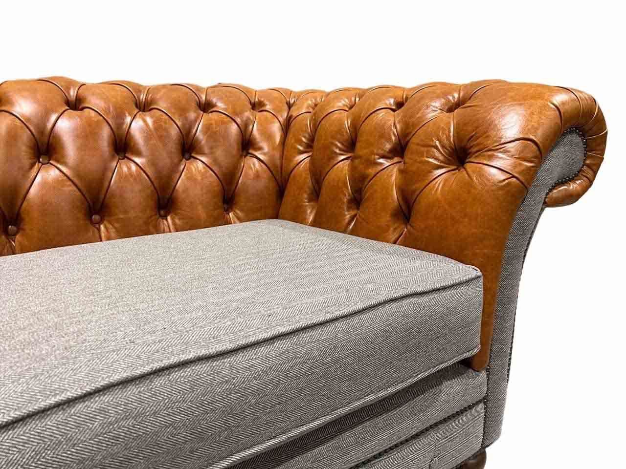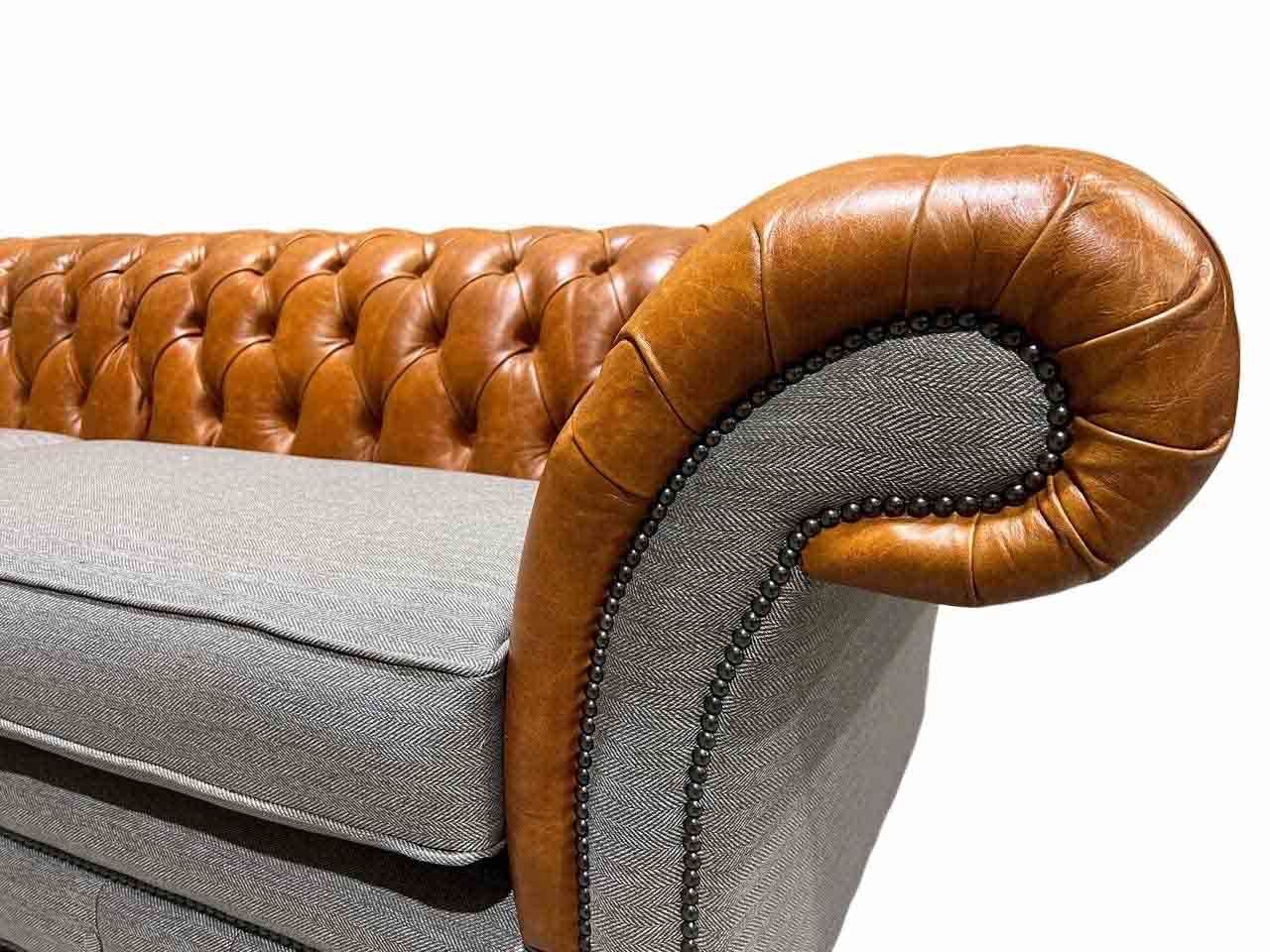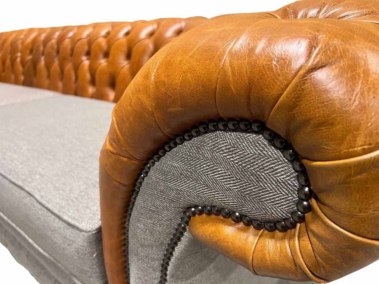 Szukasz eleganckiej i wyjątkowej sofy do swojego salonu? Mamy coś specjalnie dla Ciebie! Nasza Klasyczna 4-miejscowa sofa Chesterfield w kolorze brązowym to połączenie wysokiej jakości włókienniczego i skórzanego designu, które zachwyci Twoich gości. Dzięki możliwości personalizacji koloru oraz materiałów, możesz stworzyć idealną sofę, dopasowaną do Twoich indywidualnych potrzeb. Dodatkowo, oferujemy opcje takie jak magiczny materiał odporny na plamy, aksamit oraz prawdziwą skórę premium. Zachęcamy do wyboru naszej 4-miejscowej sofy Chesterfield, która zapewni komfortowe miejsce do siedzenia dla wszystkich gości. Wymiary: 245 x 80 x 90 cm, wysokość siedzenia: ok. 42 cm, a głębokość siedziska: ok. 52 cm. Nie czekaj dłużej! Stwórz idealną sofę marzeń i dodaj elegancji do swojego salonu. Dostępne także inne rozmiary na specjalne zamówienie. Skontaktuj się z nami, a odpowiemy na wszystkie Twoje pytania dotyczące tego wyjątkowego mebla.