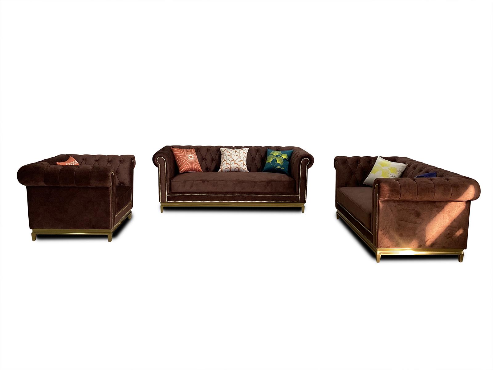 Zestaw sofowy Chesterfield z Metal Luxury Couch Włókienniczy Podkładka Meble